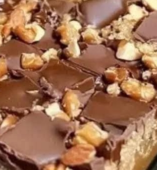 3. Top with chocolate: In a dish that can be microwaved, melt the semi-sweet chocolate chips by heating them for 30 seconds at a time while stirring until smooth. On top of the caramel layer, evenly distribute the melted chocolate. As a finishing touch, you may drizzle some white chocolate over the top.