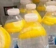 It looks like the photo shows a simple way to make homemade lemon-infused water using bottled water. The bottles have…