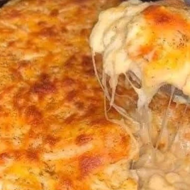 Transfer to your baking dish and top with 1 cup reserved sharp cheddar cheese.