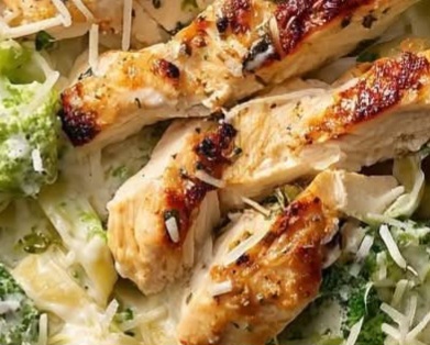 Season chicken breasts with olive oil, Italian seasoning, garlic powder, salt, and pepper.