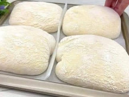 Cut the dough into 4–6 equal rectangles (don’t knead or shape too much – ciabatta is rustic).
