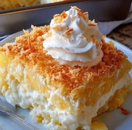 That looks like a Pineapple Coconut Cream Dessert (sometimes called Pineapple Delight or Pineapple Coconut Poke Cake). Here’s a simple recipe you can follow to make it at home: